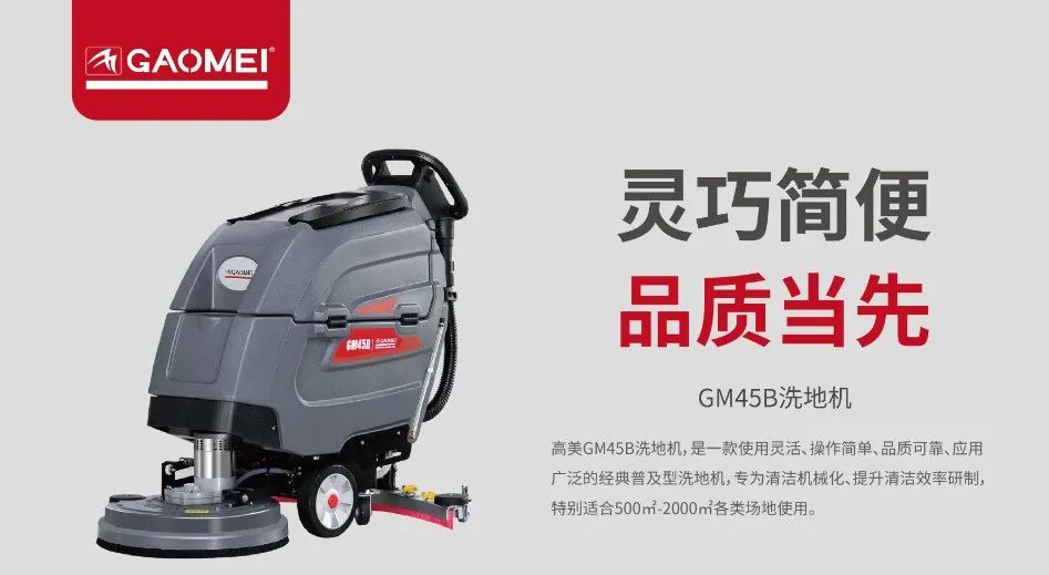 品性兼優(yōu),助力清潔。隨著社會經(jīng)濟(jì)的發(fā)展,人們對于工作生活的環(huán)境要求不斷提高。例如高檔寫字樓等辦公場所環(huán)境,有賴于高效、省心的清潔方式來維護(hù)。高美在應(yīng)對清潔效果、清潔效率、噪音控制、形象等高標(biāo)準(zhǔn)需求方面,有著豐富的經(jīng)驗,并深受市場信賴。重點(diǎn)推薦產(chǎn)品高美GM-MINI駕駛式洗地車高美GM45B手推式洗地機(jī)場景介紹大廳:地面多以大理石、瓷磚等硬質(zhì)材料為主,日常人流量大,污漬產(chǎn)生快,清潔度要求高,需要保持較高的清潔頻率,單次作業(yè)時間要求極短。可根據(jù)面積大小選駕駛式或者手推式洗地機(jī),可以快速有效實現(xiàn)清洗、吸干的同步作業(yè)。走廊:包電梯、電梯間、走廊等場所,較為狹窄,適合更加小巧靈活的清潔設(shè)備,手推低速更安全,且能滿足一定清潔效率的需求。GM45B手推式洗地機(jī),小巧靈活,兼具品質(zhì)和性價比,是中小型場景的理想之選。辦公場所:場景較為復(fù)雜,硬質(zhì)地面可選用靈活小巧的洗地機(jī)。如果是地毯,日常清潔可以選用高美吸塵器V20,中長期護(hù)理可以選用高美地毯清洗機(jī)GM-4或者干泡地毯清洗機(jī)FB1517/MF-10。大樓外圍、衛(wèi)生間等場所:多以硬質(zhì)地面為主,同樣可以選擇以上兩款機(jī)型來進(jìn)行清潔作業(yè)。涉及大理石等地面,需要定期護(hù)理的,可以選用高美晶面加重翻新機(jī)FC-2517。