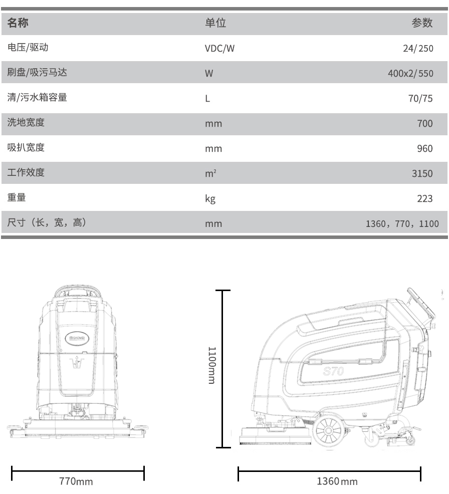 高美手推式雙刷洗地機(jī)S70